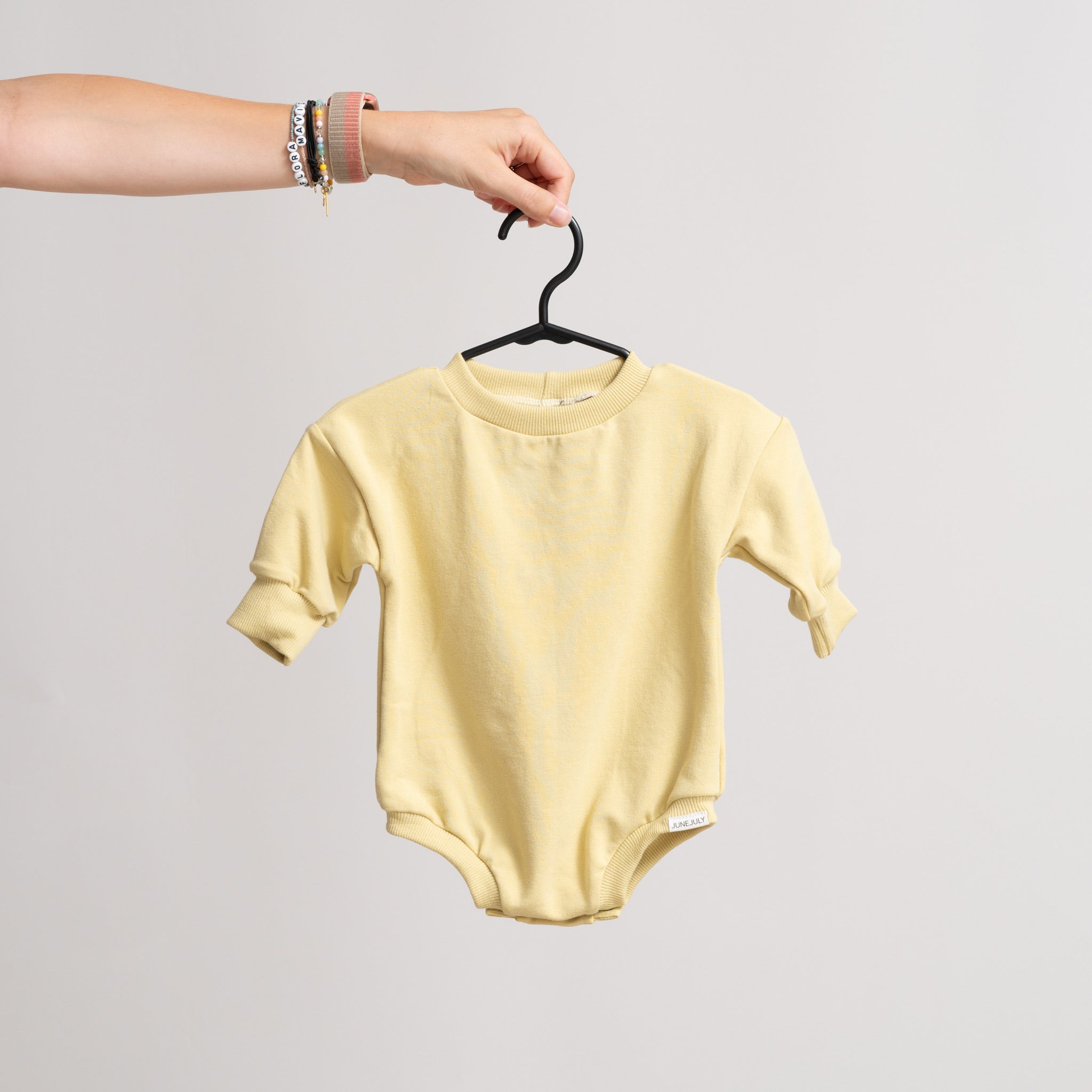 Our organic French terry long sleeve romper is the perfect fall staple. Keep it simple, add a monogram, pair with fun patterned leggings or a dark jean. The possibilities are endless!