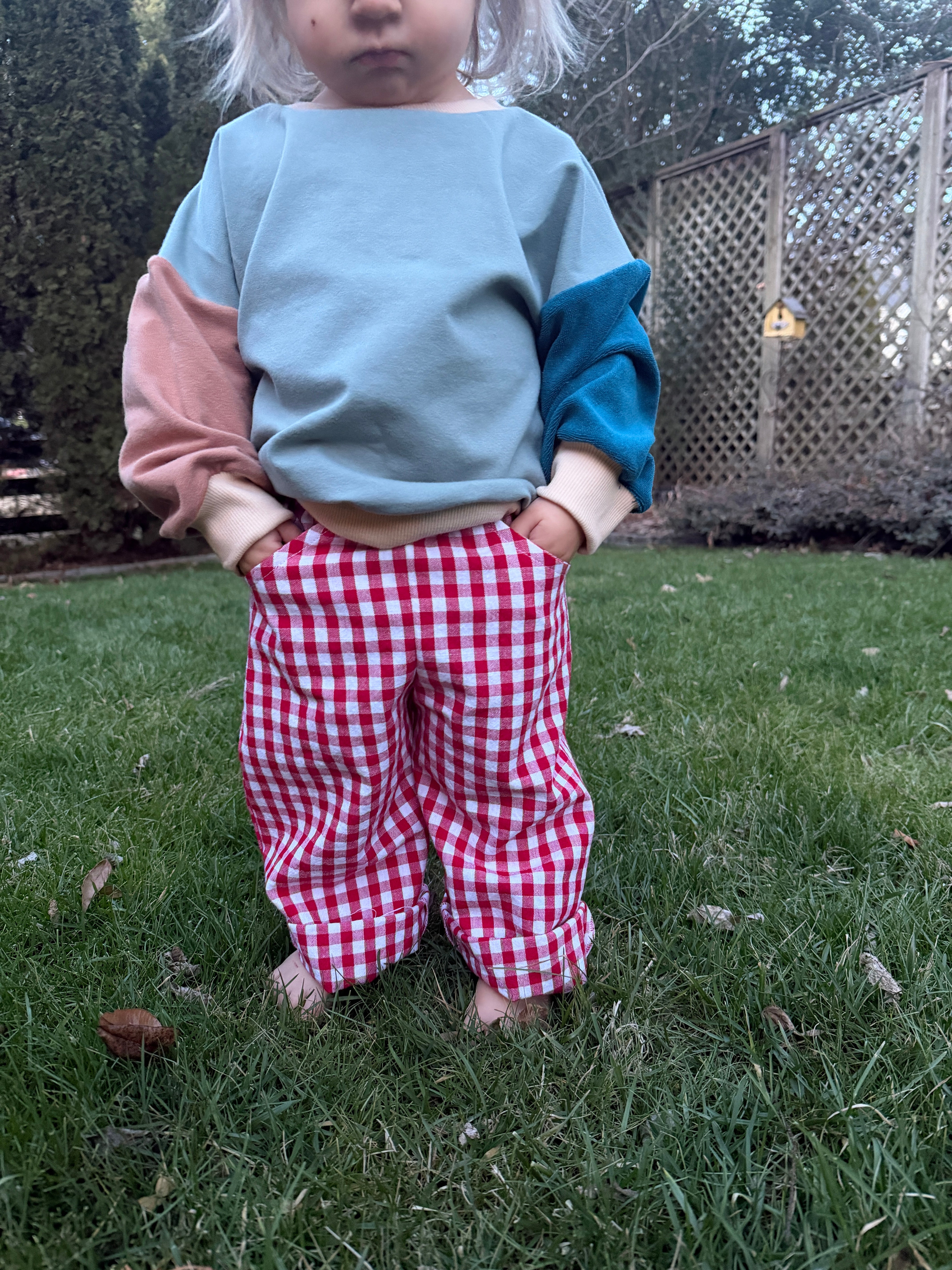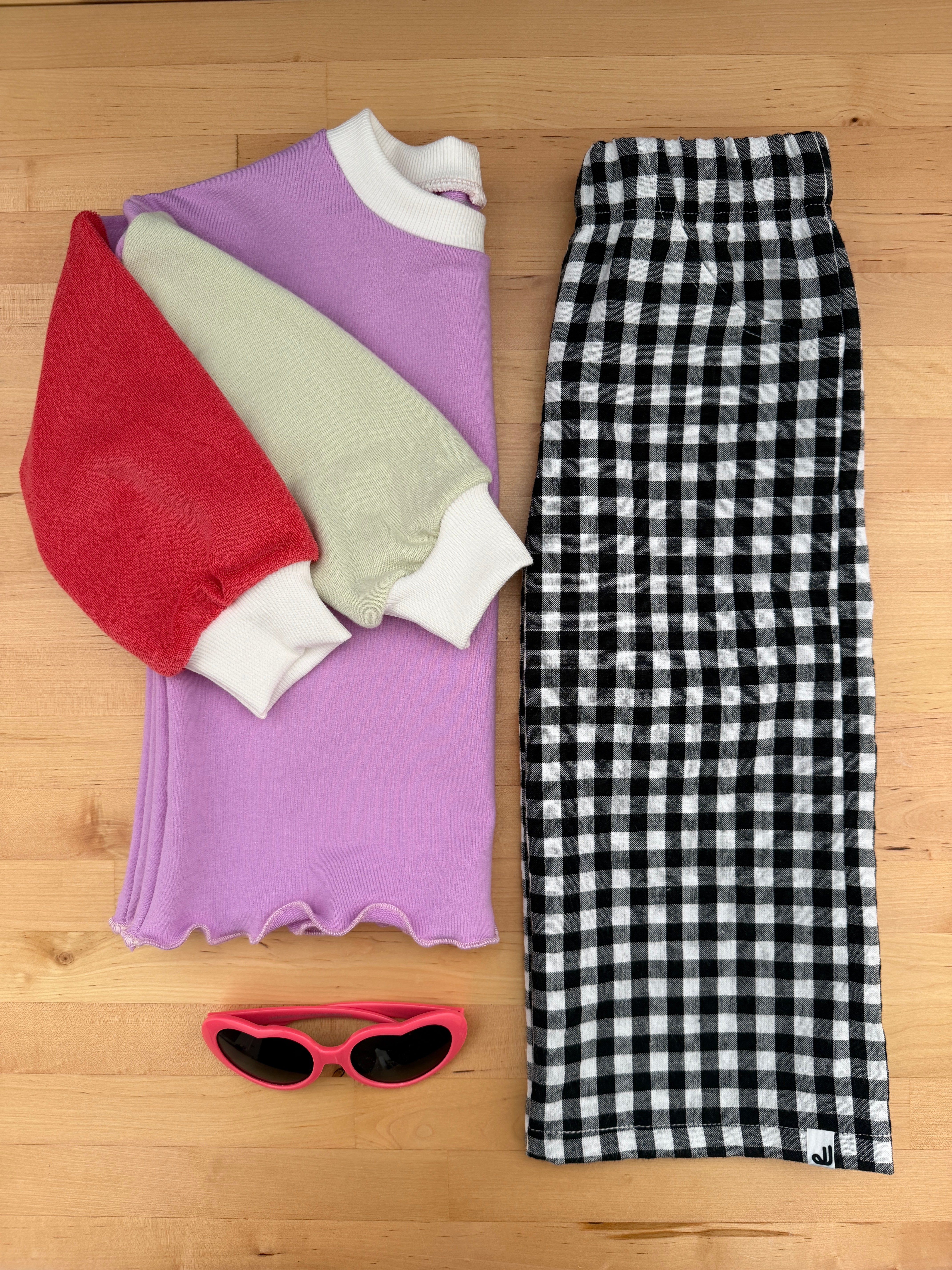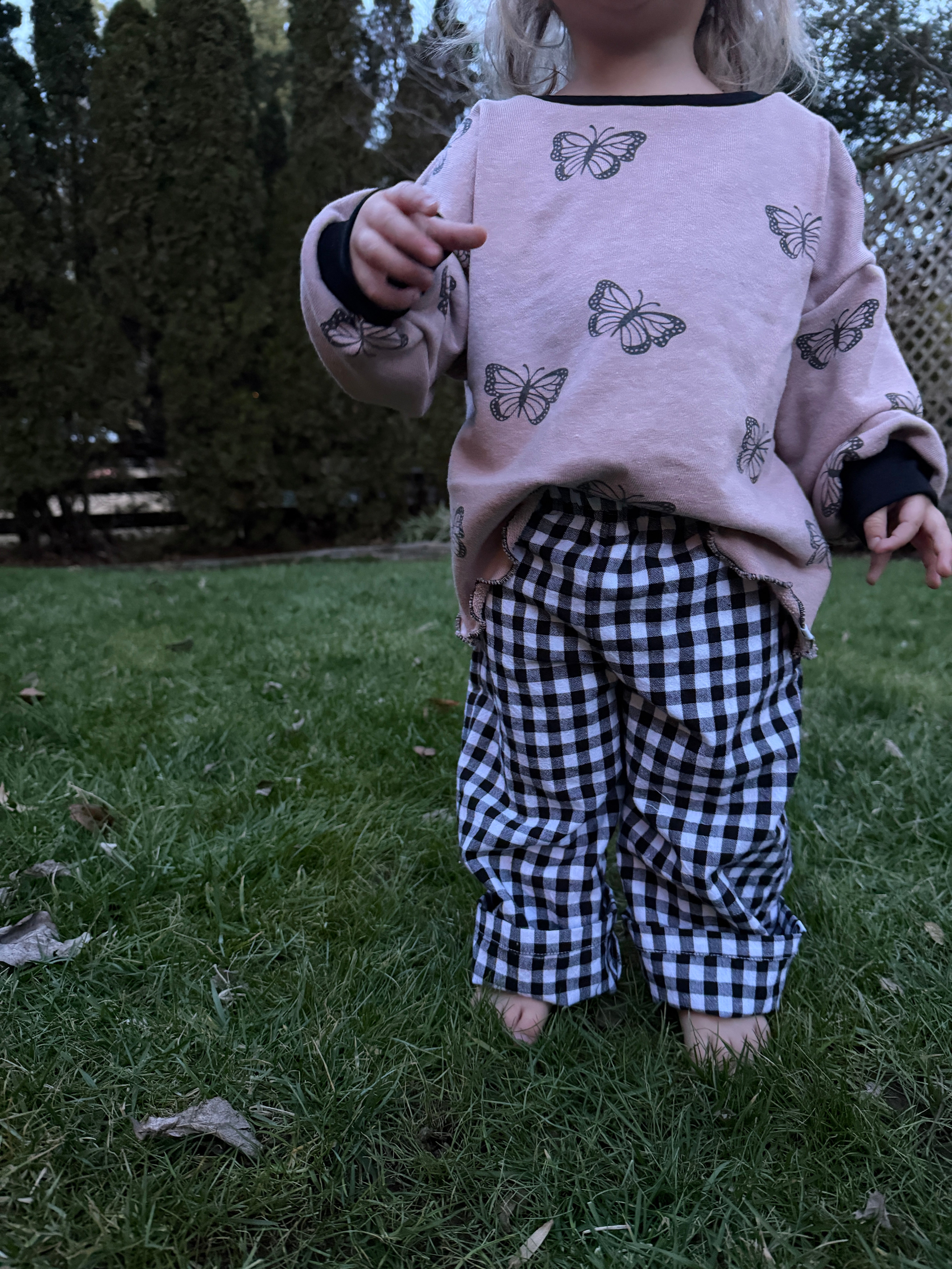 Currently offered in sizes 9-12 mo up to size 6. Please reach out for other size options or if you would like a pocket-free version made. info@junejulyshop.com
