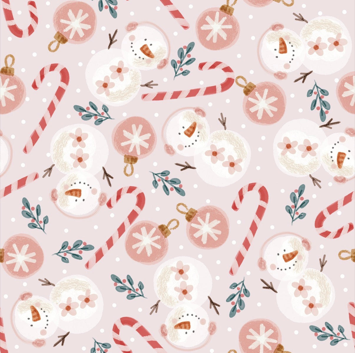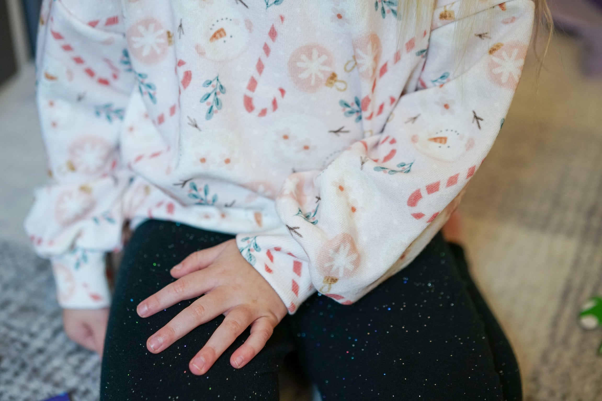 Organic cotton French terry and rib custom printed with a fun pale pink snowman print! This sweatshirt is cozy perfection and handmade in Franklin, TN.
