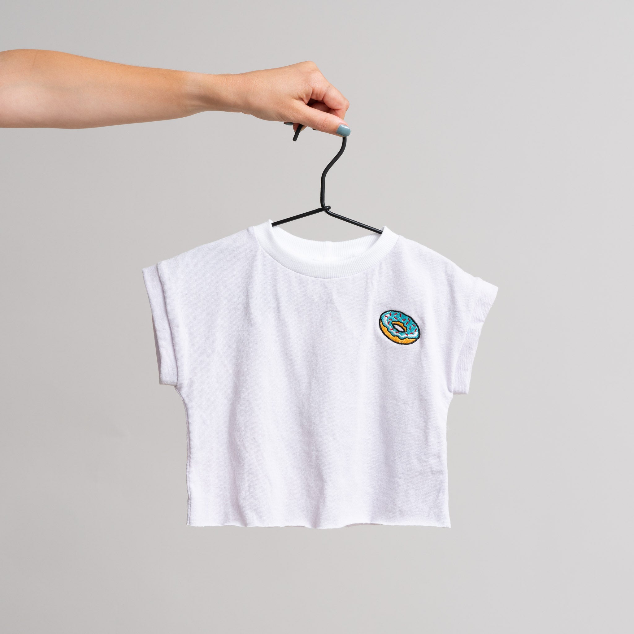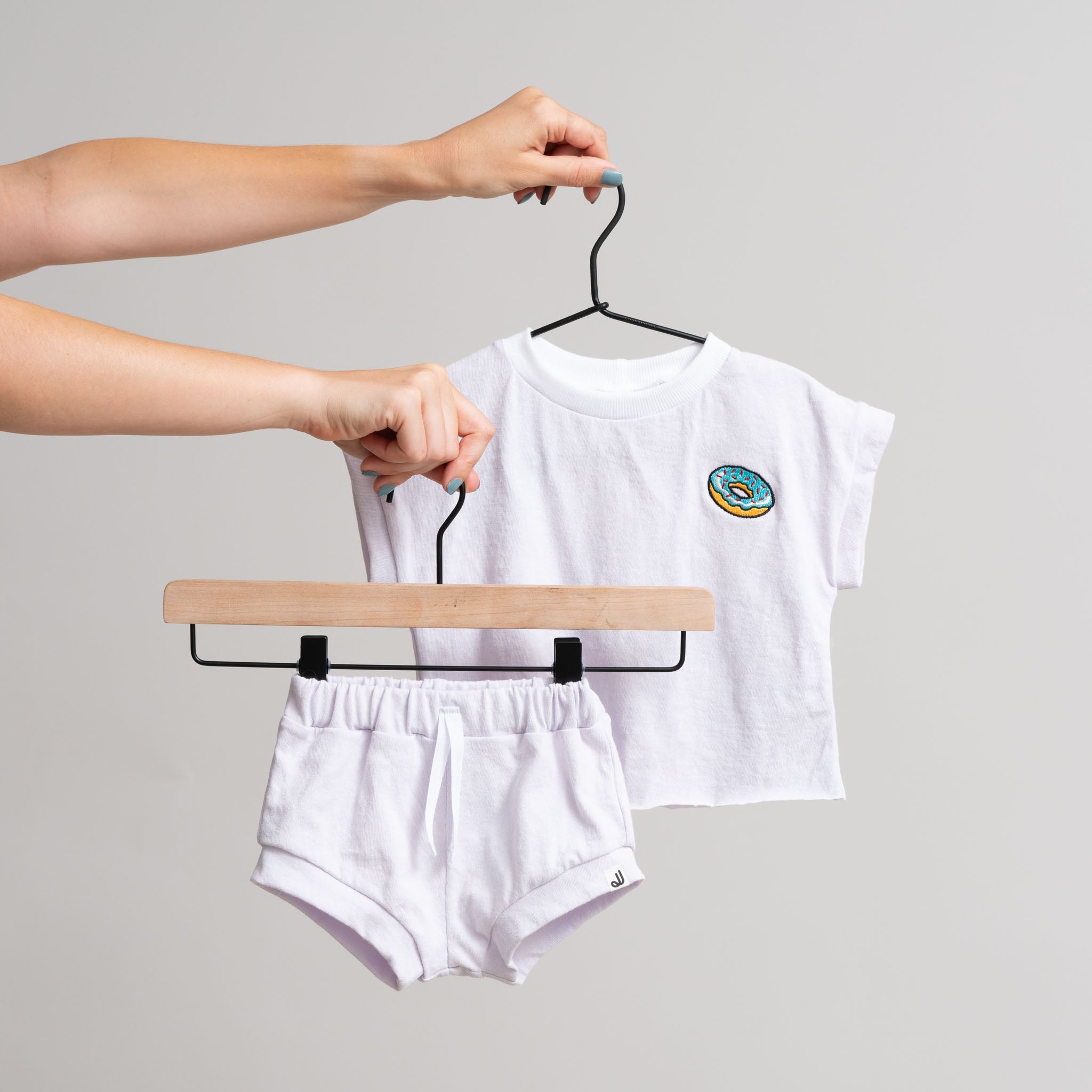 Grab this adorable, upcycled Donut embroidered Two-Piece Set for your little one - made with a fun lavender shirt and coordinating shorties! This handmade set, featuring our boxy t-shirt and classic shorties is a set your little culinary mastermind is sure to eat up!
